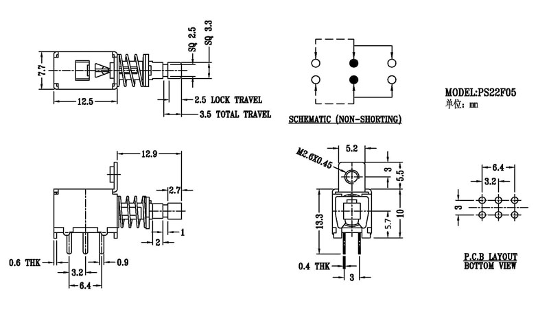 按鍵撥動開關技術參數: