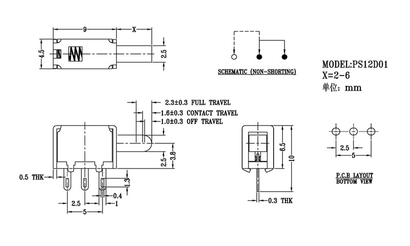 按鍵撥動(dòng)開關(guān)技術(shù)參數(shù):