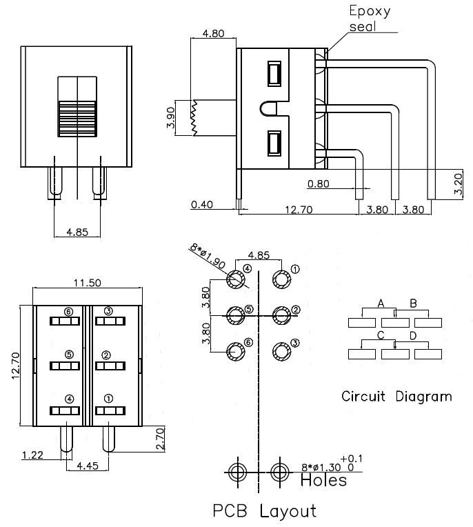 按鍵撥動開關技術參數: