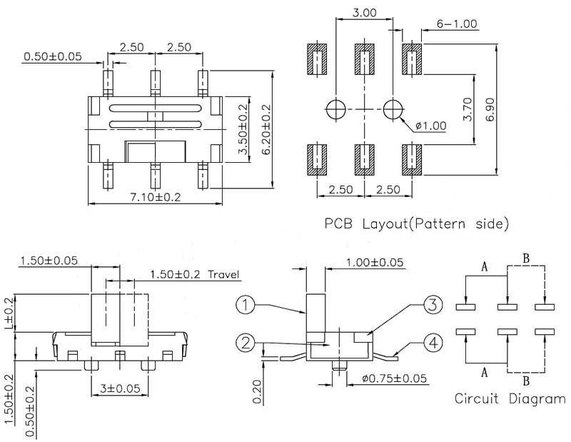 微型撥動開關技術參數: