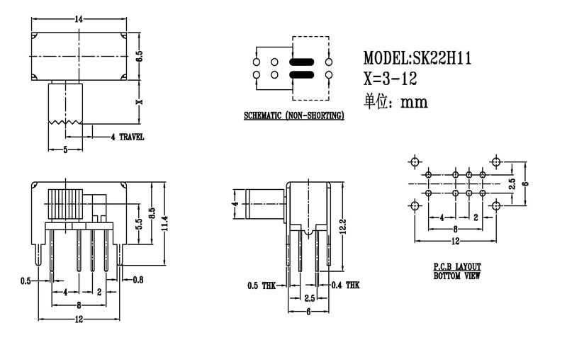 微型撥動開關技術參數:
