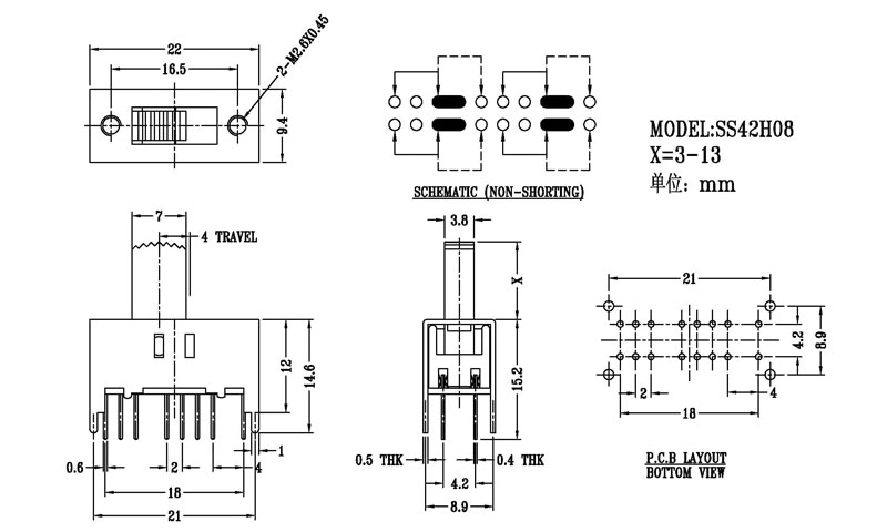 微型撥動(dòng)開關(guān)技術(shù)參數(shù):