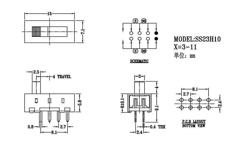 微型撥動(dòng)開關(guān)技術(shù)參數(shù):