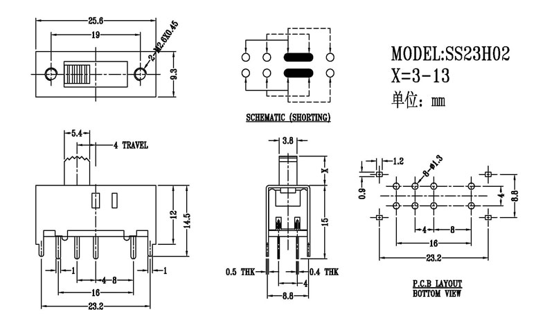 微型撥動(dòng)開(kāi)關(guān)技術(shù)參數(shù):