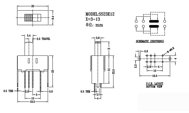 微型撥動(dòng)開(kāi)關(guān)技術(shù)參數(shù):