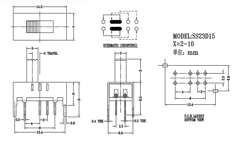 微型撥動開關(guān)技術(shù)參數(shù):