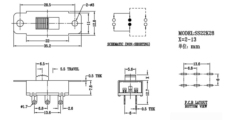 微型撥動(dòng)開關(guān)技術(shù)參數(shù):