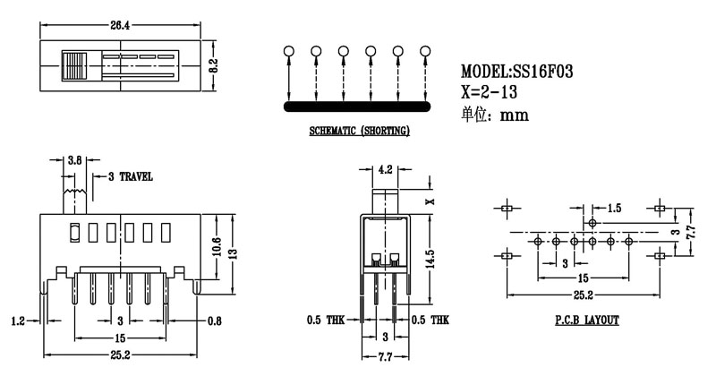 微型撥動開關技術參數: