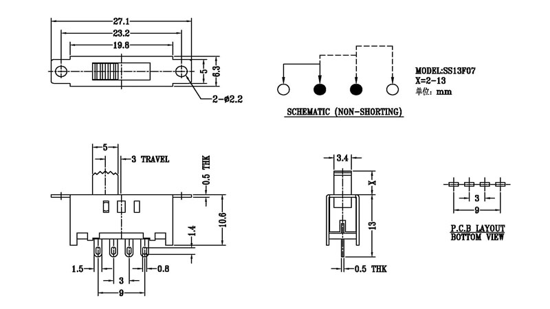 微型撥動開關技術參數: