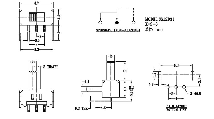 微型撥動(dòng)開關(guān)技術(shù)參數(shù):