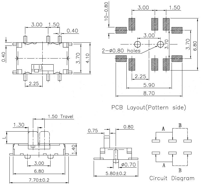 微型撥動開關技術參數(shù):