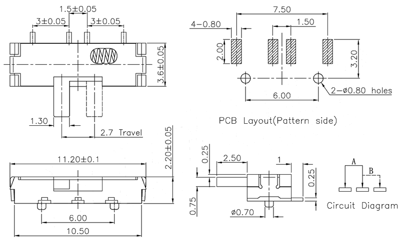 微型撥動開關技術參數: