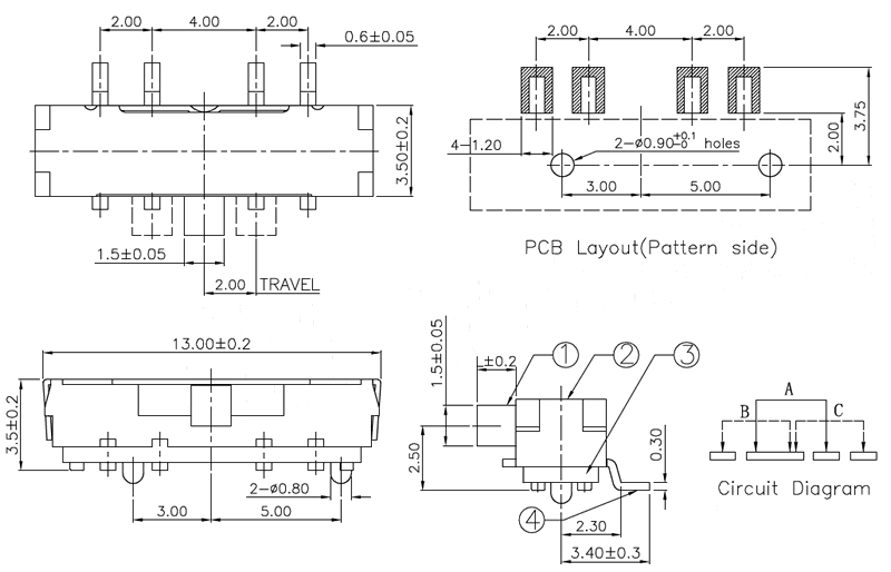 YX-K3-1346S是一款:小撥動開關-三檔側撥貼片-微型撥動開關廠家,因為體積小,多檔位,撥動力度均勻檔位感好,廣泛用于各種小型的數碼產品!