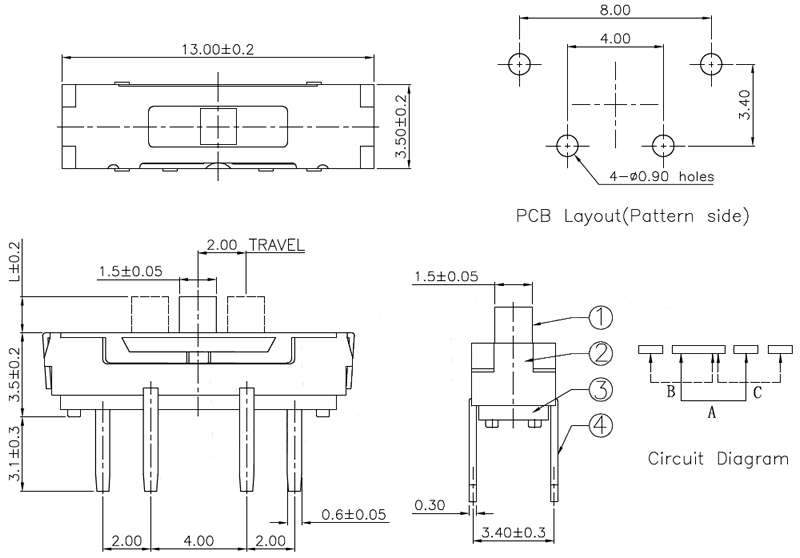 微型撥動(dòng)開(kāi)關(guān)技術(shù)參數(shù):