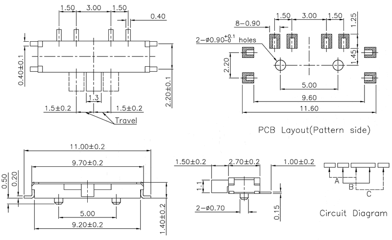 微型撥動(dòng)開關(guān)技術(shù)參數(shù):