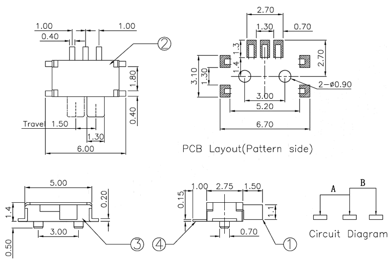 微型撥動(dòng)開(kāi)關(guān)技術(shù)參數(shù):