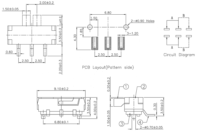 微型撥動開關(guān)技術(shù)參數(shù):